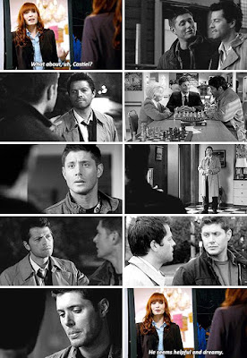 E claro, não teve somente a cena da mix tape, teve a cena do Dean atacando o anjo - empurrando contra a parede, na verdade -, mais uma cena em que Castiel poderia ter morrido, uma cena de 'You're hurt' ("você está machucado"), Dean justificando sua raiva com Cass - mas não deixando mais ninguém ficar bravo com o anjo - e MAIS OLHARES!